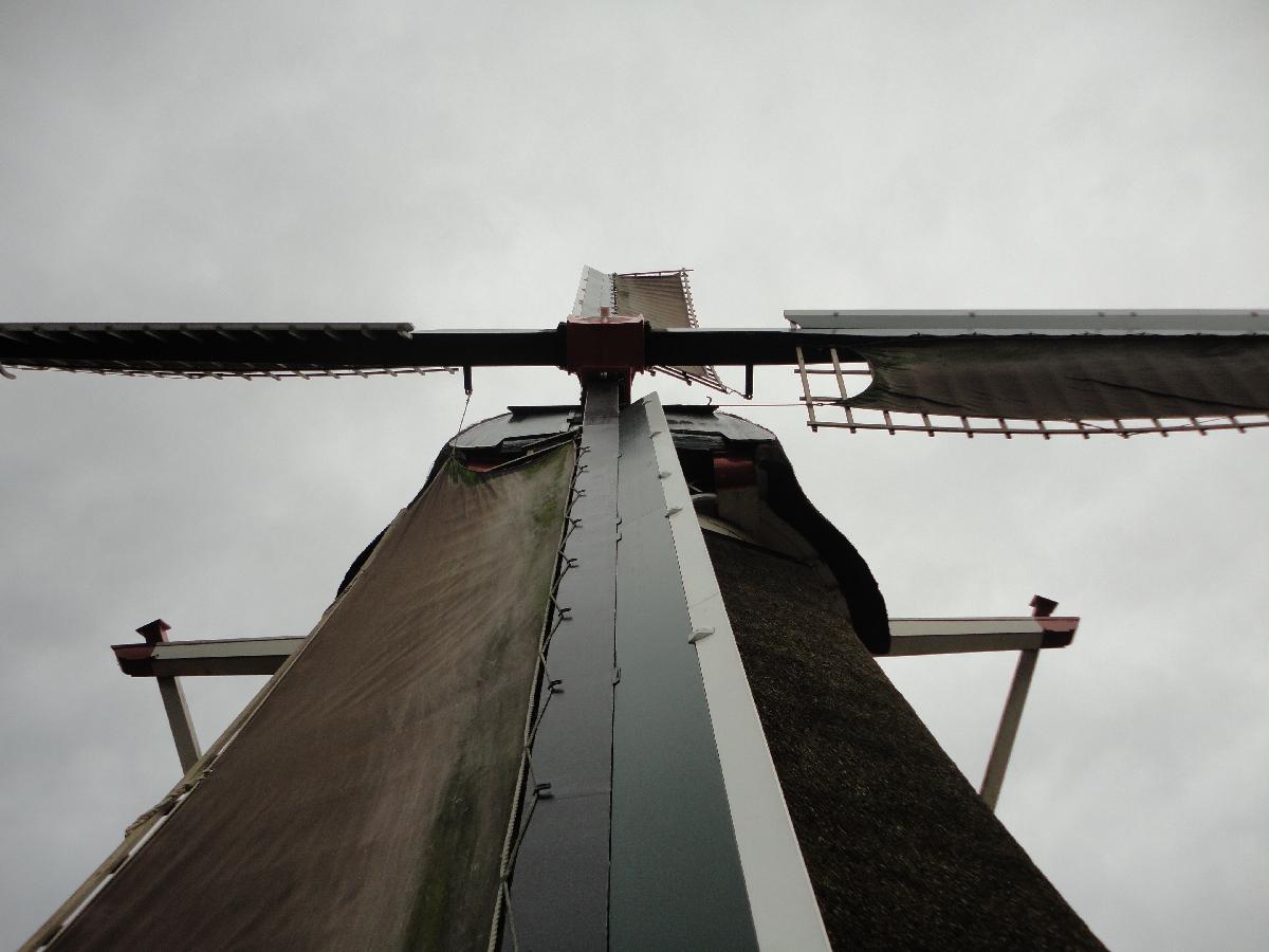 De Valk has wings with the Dutch sail system. The miller can use four sails, but he depends on the wind. When the wind is too strong he has to reef. That means that the miller has to furl up a part of the sails. After the reefing the wings can not reach the speed they had before.
